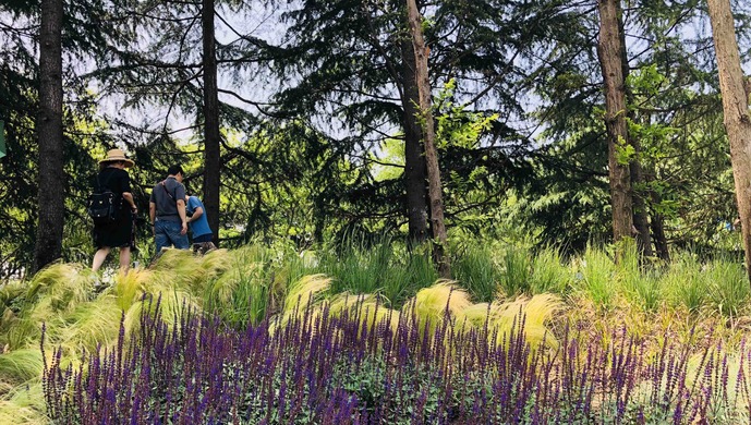 沿着绿道由南向北前行,记者发现绿道两侧的地势逐渐出现了“高低差”,这又是为何?徐汇中环绿廊设计师姚国华介绍,考虑到中环线车流量大,噪音难以避免,因此绿廊紧邻中环线的东侧设计地势高耸,靠近居民区的西侧地势就相对平缓,为市民散步、休息、运动营造理想环境。