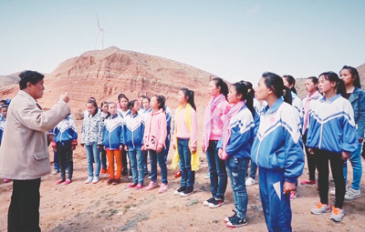 宁夏中宁县宽口井学校春蕾女童合唱团在练习合唱。资料图片