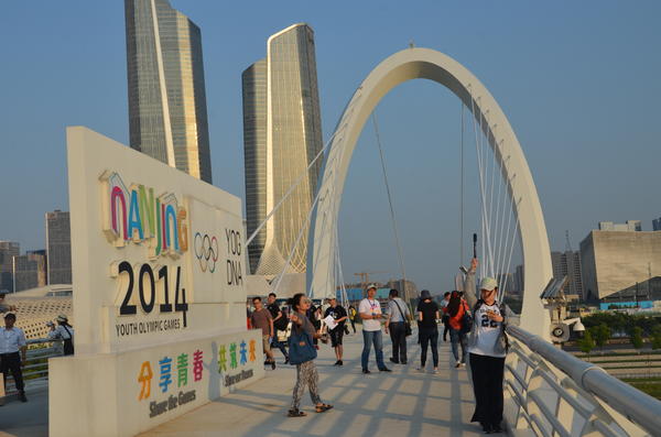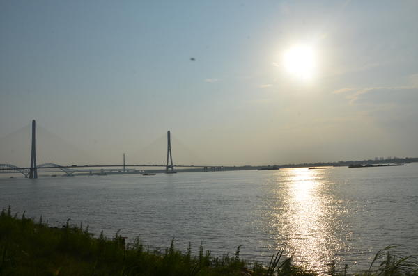 下午,乘着电瓶车在滨江风光带游览,尽览长江之美。滨江风光带河西段北起北河口水厂,南至秦淮新河入江口,西邻夹江,东至扬子江大道,南北全长约11.5公里,最宽处580米,最窄处20米,总面积4.37平方公里,大致分为万景园段、绿博园段、国际青年文化公园段、鱼嘴鱼背湿地公园段等四个区域。