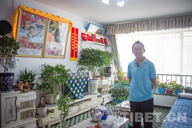 扎西罗布是一名普通民警。走进他的家中,一进门就看到各种花花草草摆满了不大的客厅。穿着短袖的扎西罗布正坐在沙发上,周围是满眼绿色。“我们这里冬季又长又冷,以前取暖主要靠牛粪。睡觉的时候被子要盖好几层,在家中衣服穿得也是里三层外三层,根本不愿意在家里面呆。买的许多花草,养不到一个星期就死光了。现在好了,在家里穿着短袖也不觉得冷了,喜欢什么花都可以往家里面买了,而且现在都长得挺好的”,扎西罗布笑着说。