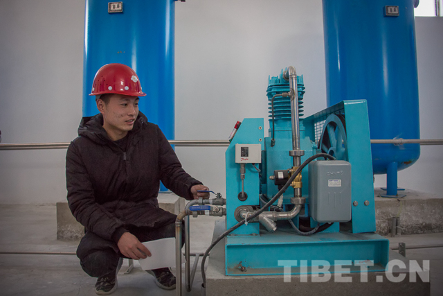 来自四川德阳的古荣飞在集中供氧项目建设之初,跟随公司来到了错那县,负责设备的检测和调试。谈到刚到错那县的情况,古荣飞说:“刚来的时候真是吃不消,高反让我们很多工人都度日如年。我还好一些,年龄大一点的同事深受缺氧的折磨,每天晚上都睡不好觉。2017年,我们克服种种困难把集中供氧项目投入了使用,现在我们的办公室和住宿区氧含量都较高,在高原工作也更加舒适和高效了。”