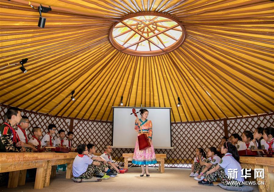 5月17日,呼和浩特市玉泉区五塔寺东街小学学生在内蒙古马头琴艺术博物馆参观。国际博物馆日将至,人们纷纷走进博物馆,感受博物馆展品的魅力。新华社发(丁根厚 摄)