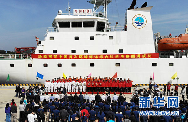 我国新一代远洋综合科考船“向阳红01”船圆满完成中国首次环球海洋综合科考任务,18日返回青岛母港。183名科考队员在六个航段跨越三大洋,登上南极,布放“白龙”浮标,抓取中国单体最大块状硫化物,发现富稀土沉积区,首次在南极发现海底热液与冷泉并存,书写了诸多中国海洋科考新纪录。