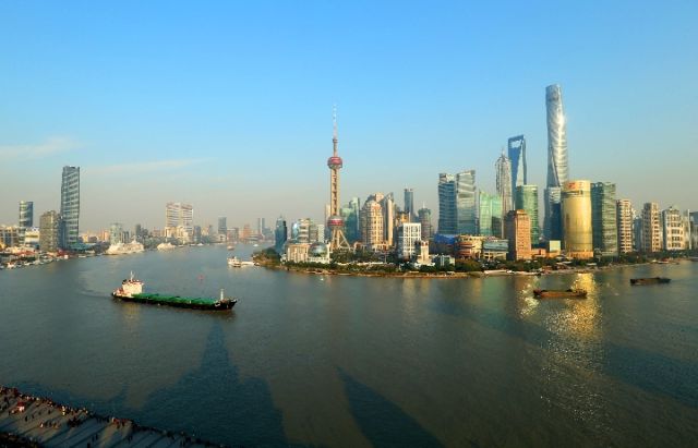 从上海海关钟楼眺望浦东陆家嘴。(新华社记者任珑摄)
