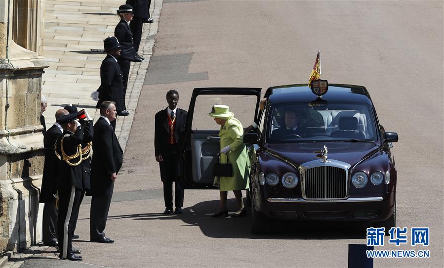 5月19日,在英国温莎,英国女王伊丽莎白二世(中)抵达温莎城堡,准备参加婚礼。新华社记者 韩岩 摄