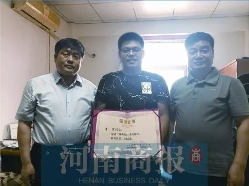 5月18日,“的哥”李波老家河南省林州市委宣传部人员为其颁发“林州好人”荣誉证书