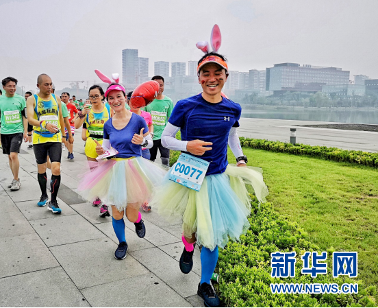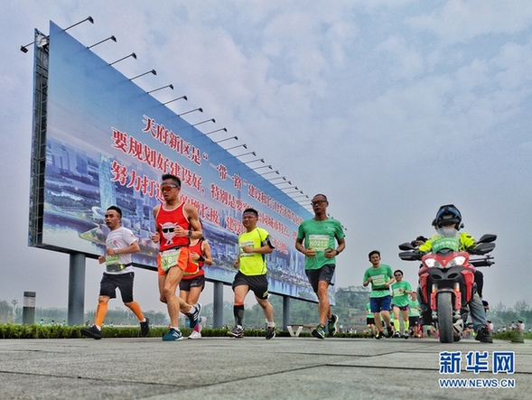 新华网体育成都5月20日电(吴晓 龚媛媛)5月20日上午8时30分,韵动中国·2018天府新区公园城市半程马拉松赛(以下简称“2018天府半马”)在四川天府新区鸣枪开赛。随着一声发令枪响,来自十余个国家和地区的7000余名跑友在被誉为天府新区“生态之肾”的兴隆湖畔激情竞速。承担航拍任务的直升机从选手头顶飞过,引起阵阵欢呼。