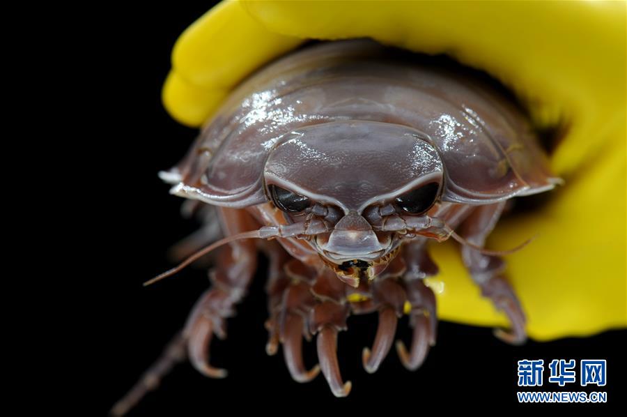 在近1400米深的海马冷泉附近海底,李新正乘坐的“深海勇士”号潜次,还首次诱捕到一只长15厘米的“深海水虱”。深海水虱属节肢动物门、甲壳动物亚门、软甲纲、等足目,是典型的深海肉食性物种,与陆地上的西瓜虫是“亲戚”,但体型大得多。该生物样品的获取,有助于进行海马冷泉附近海域的深海环境生物多样性和生态系统研究。