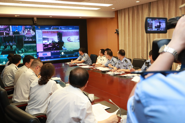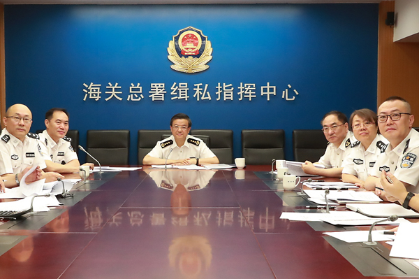 图为:海关总署署长倪岳峰在总署缉私指挥中心现场指挥 高立强/摄