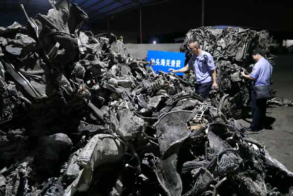 图为:汕头海关查获涉嫌走私的废旧金属一批