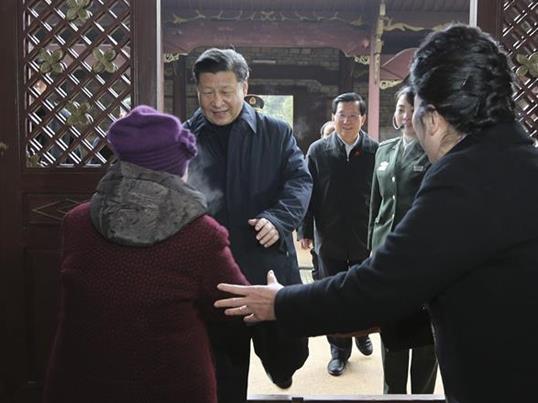 2016年2月2日,习近平在八角楼革命旧址看望全国道德模范和英烈后人。来源:新华网