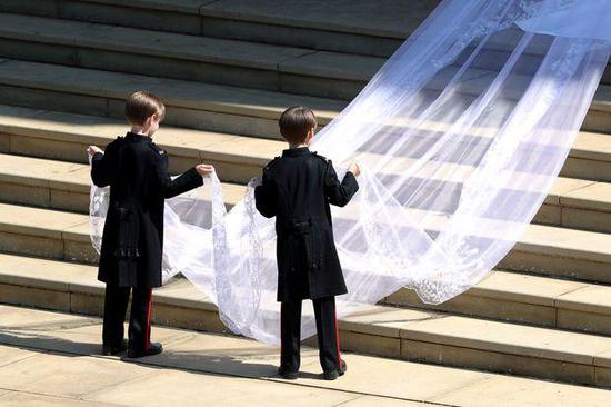 整套婚纱中唯一比较夸张且浪漫的元素,是超长的薄纱后摆,这样的设计主要是为了方便进行一个“传统项目”——由两名花童抬着后摆缓缓走上教堂台阶,但较诸传统婚纱的后摆,梅根的婚纱显得更飘逸、更轻薄。