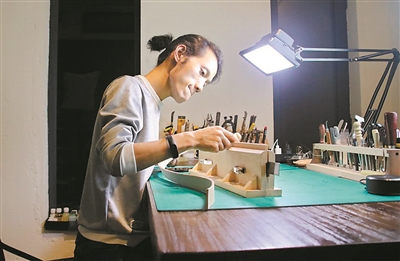 这极大地激励了唐剑的自信心。他决定,这辈子自己要当一名皮艺匠人。他回到北京,专攻做皮带。做一条皮带需30多道工序,最痴迷的时候,他可以连续40个小时不睡觉一直做。经过长达半年的练习,即使不使用左手,他也能在4个小时内制成一条皮带。不过,他付出了比常人更多的艰辛。“比如,要在皮带上划线打孔,我左手按不住,经常划歪,我就用秤砣压住皮带,别人10秒钟就划好了,我却要2分钟。”一条皮带做下来,唐剑大汗淋漓。