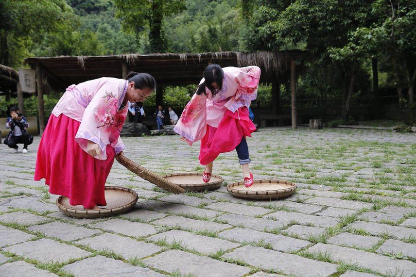 酉阳桃花源景区是按照陶渊明笔下《桃花源记》所描述的意境而进行的改版,以秦晋文化为主线,以田园风光为载体,以情景体验为主轴,串联场景展示、文化演绎和“醢、菹、九氏嘉谷”等秦晋生活元素,在现实中为游客勾画描绘出世外桃源隐逸悠远、宁静和谐、男耕女织的田园生活画卷。