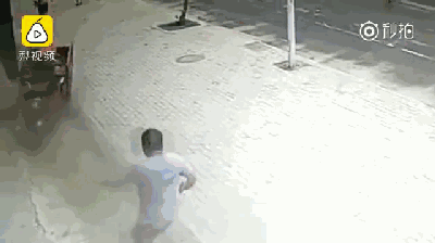 5月19日,河南兰考县南彰镇一家店门口,一辆三轮车飞速冲来,一个小孩挂在车把上嚎啕大哭...