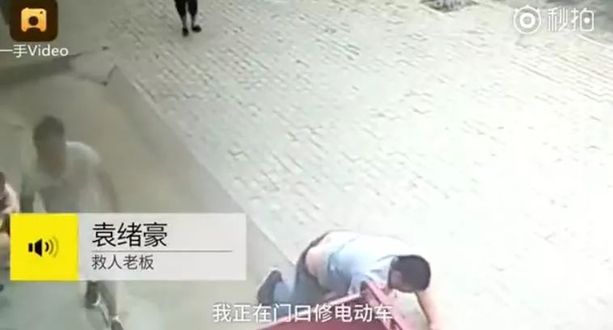 救人老板:“我也没事,就受了一点小伤皮外伤,小孩没事。”