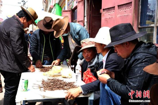 资料图:杂多县冬虫夏草自由交易市场。罗云鹏 摄