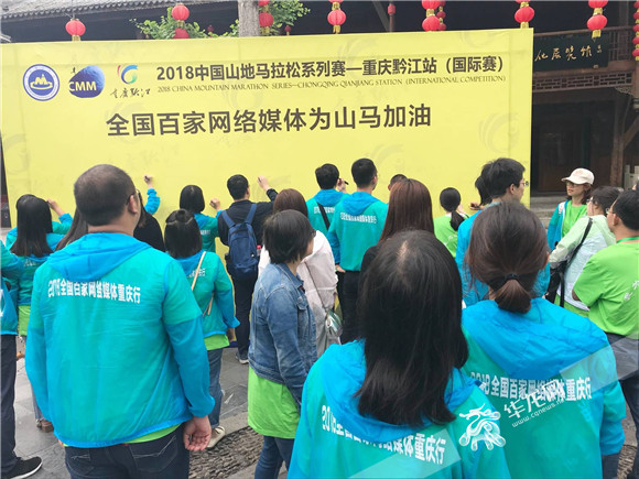 全国网络媒体记者提前探班黔江山地马拉松。见习记者闫仪摄