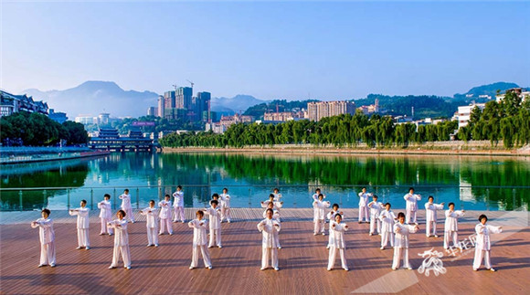 三岔河城市客厅,市民正在健身。 图片来源:黔江政府网