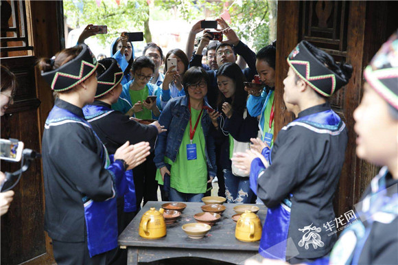热情的土家人用拦门酒欢迎远到而来的记者们 记者 李文科摄