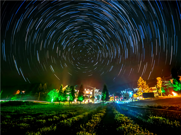 星轨下的茶山小镇。 白马山旅游度假区管委会供图 华龙网发