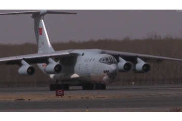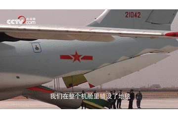 空军军机前往韩国机场,以国之重器载国之英雄,机舱内铺设地毯,根据烈士棺椁尺寸定制和安装固定支架;