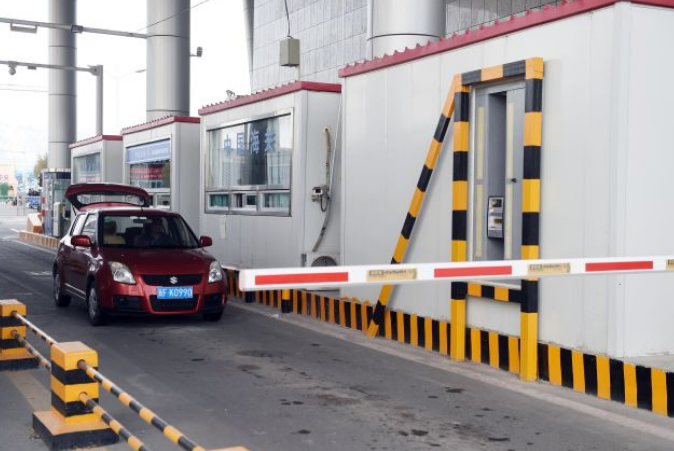 车辆在通过中哈霍尔果斯国际边境合作中心的“一站式”入出境联检通道(2015年11月11日摄)。新华社记者 陈晔华 摄