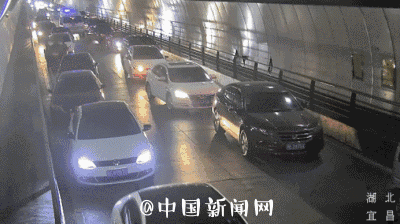 危急时刻,前方百余辆车主动向隧道两侧避让,