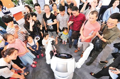 2018中国国际大数据产业博览会上跳舞的小i机器人。 新华社记者 欧东衢摄