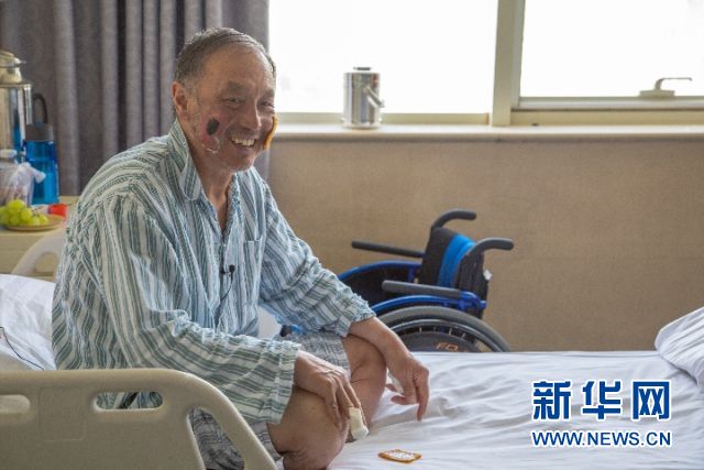 ↑2018年5月23日,夏伯渝登顶成功后在北京一家医院疗伤。新华社记者郭沛然拍摄