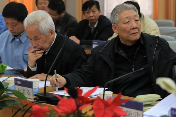 孙家栋(右)在西昌卫星发射中心出席长征三号甲遥十八火箭加注前质量评审会(2010年12月15日摄)。新华社记者 李明放摄