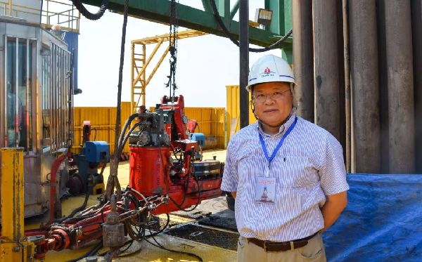 资料照片:战略科学家黄大年在松辽盆地大陆科学钻探2号井现场(2014年8月8日摄)新华社发