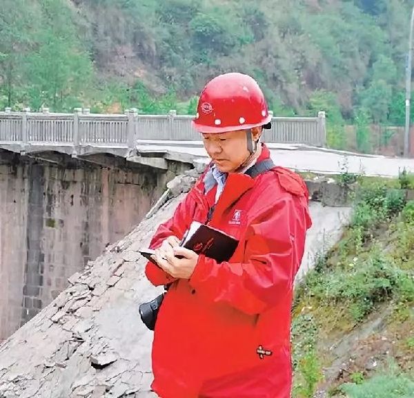 芦山地震后,崔鹏在灾区勘察。(资料照片)