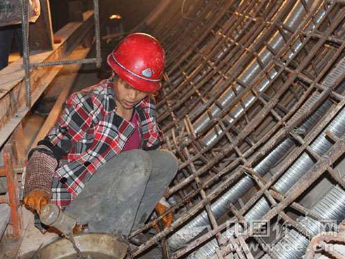 图为在地面40米下的穿黄隧洞里,辛勤工作的劳动者。经济日报-中国经济网 年巍摄于2012年