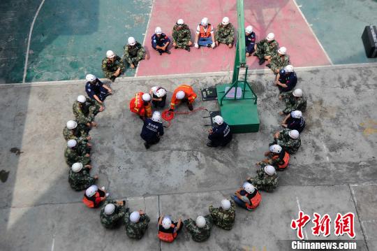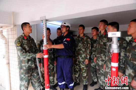 蓝天救援队志愿者向消防官兵传授建筑物重型支撑技巧。 蒋雪林摄