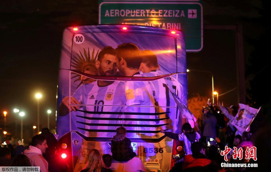 阿根廷队乘“定制款”大巴出征世界杯 球迷夹道欢送