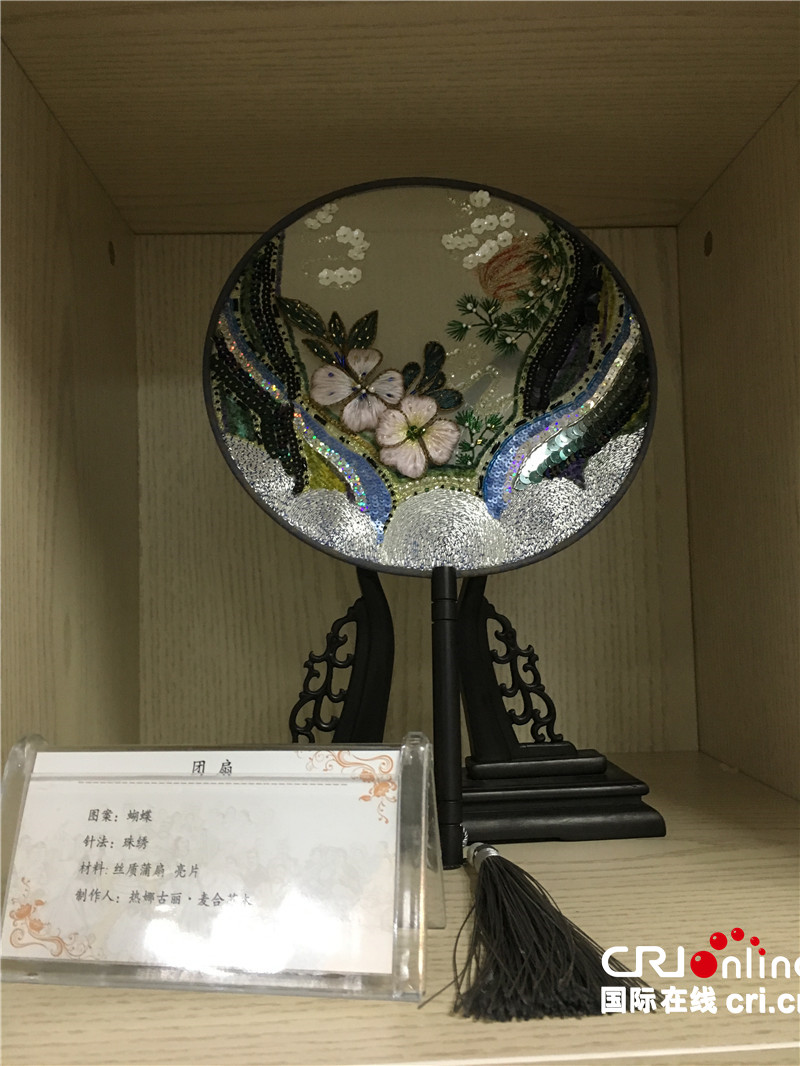 哈密传统工艺工作站的刺绣团扇作品