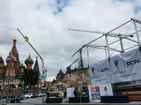 原标题:世界杯媒体大战在即,中央广播电视总台亮相莫斯科红场