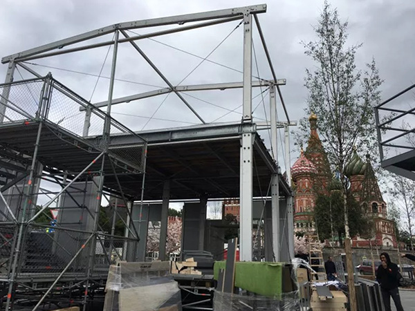 目前,二层楼高的红场融媒体演播室正在搭建之中,计划将于6月5日竣工,6月10日正式投入使用。届时,透过二楼主演播室的透明玻璃,俄罗斯标志性建筑圣瓦西里大教堂尽收眼底。