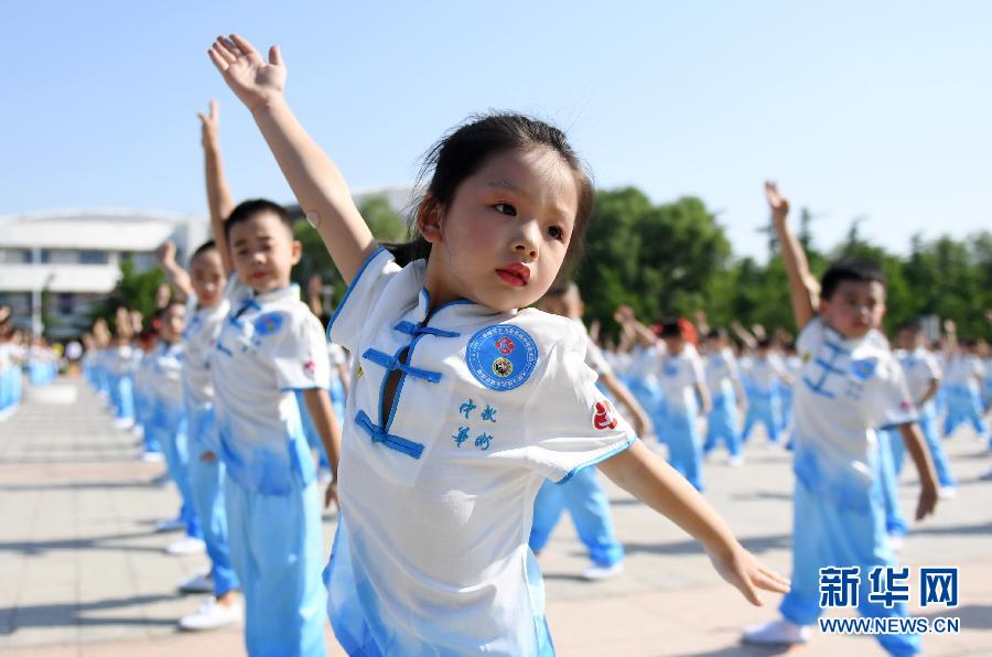 新华社北京6月1日电神州少年翩翩舞百城百万儿童齐练中华武术