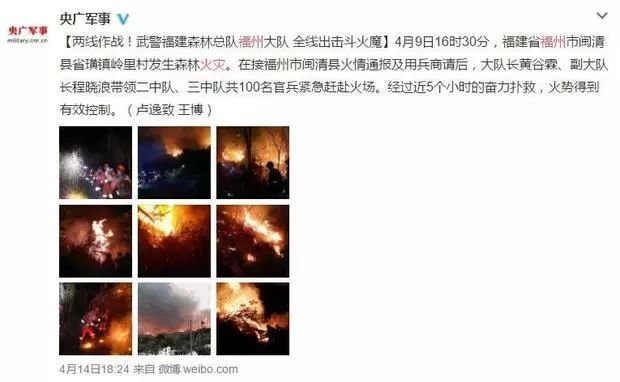 福州100名官兵紧急赶赴火场,经过近5个小时的奋力扑救,火势得到有效控制。