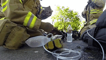 火灾过后的第二天,还有消防员在火灾现场善后,一位消防官兵太过疲劳,短暂休息时淋着雨就睡着了。