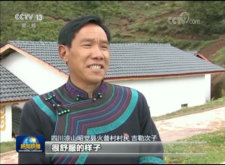 四川凉山昭觉县火普村村民 吉勒次子:精准扶贫实施以来,我们这个村的变化特别大,我们家里以前是没有洗澡的地方,现在有太阳能了,洗个热水澡,很舒服的样子。我相信我们的生活以后会越来越美好。