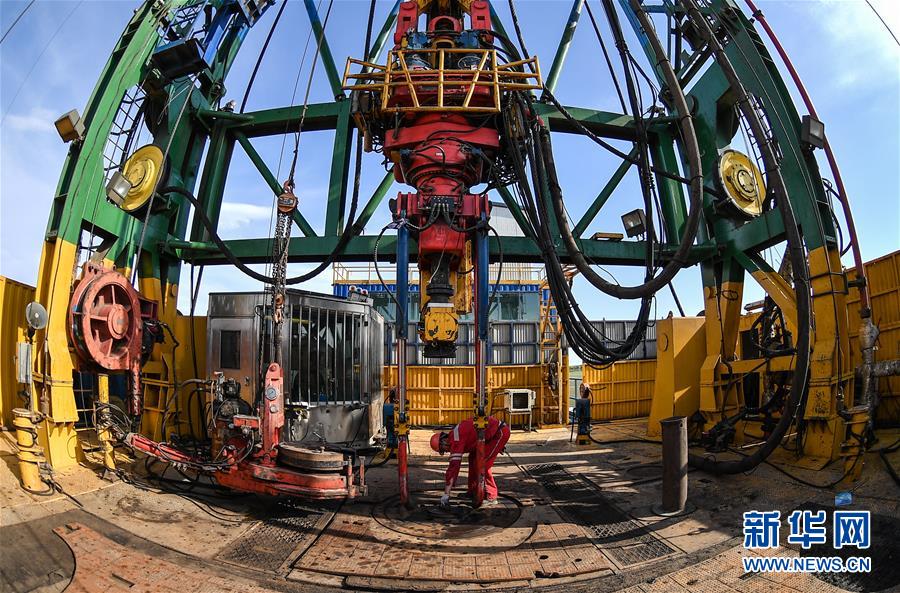 这是夕阳下的“地壳一号”万米钻机整机系统(6月1日摄)。新华社记者许畅摄