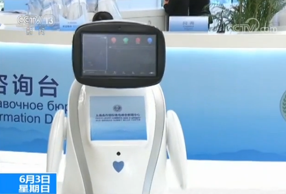 迎宾机器人:欢迎光临上海合作组织青岛峰会新闻中心,很高兴为你服务。