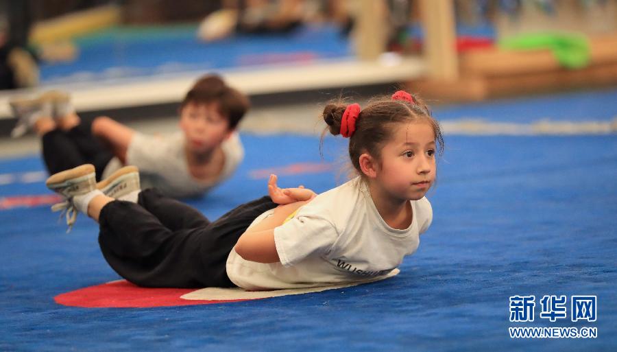 ↑图为王天雅(前)在武术训练课上(5月30日摄)。新华社记者李颖摄