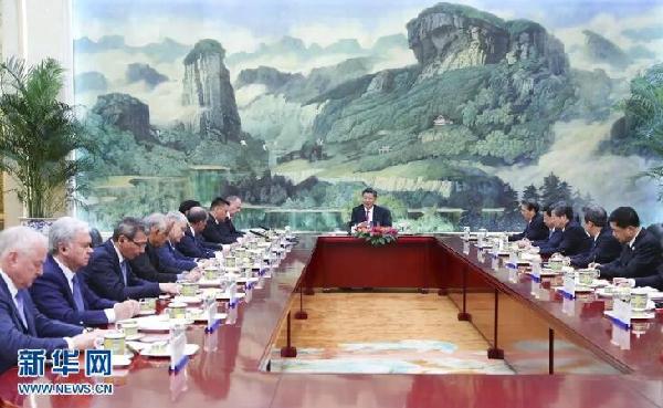 5月22日,国家主席习近平在北京人民大会堂集体会见来华出席上海合作组织成员国安全会议秘书第十三次会议的外方代表团团长。