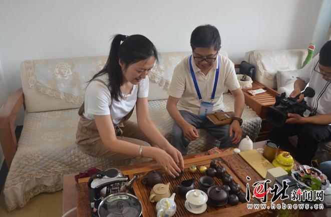 刘丽娜请记者品尝用长江水沏出的茶。 记者魏雨摄