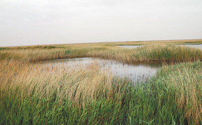消失半个多世纪后重现碧波的青土湖。 本报记者 付文摄