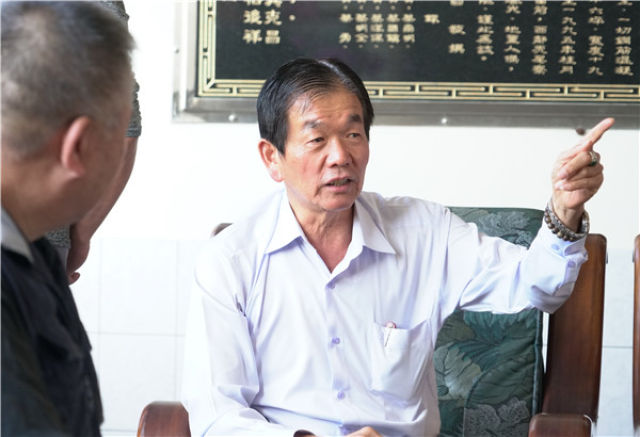 ↑祖籍福建晋江东石的台湾嘉义人周清水在台湾嘉义介绍嘉义东石和晋江东石一脉相承的风俗习惯等传统文化(4月8日摄)。新华社记者林善传摄